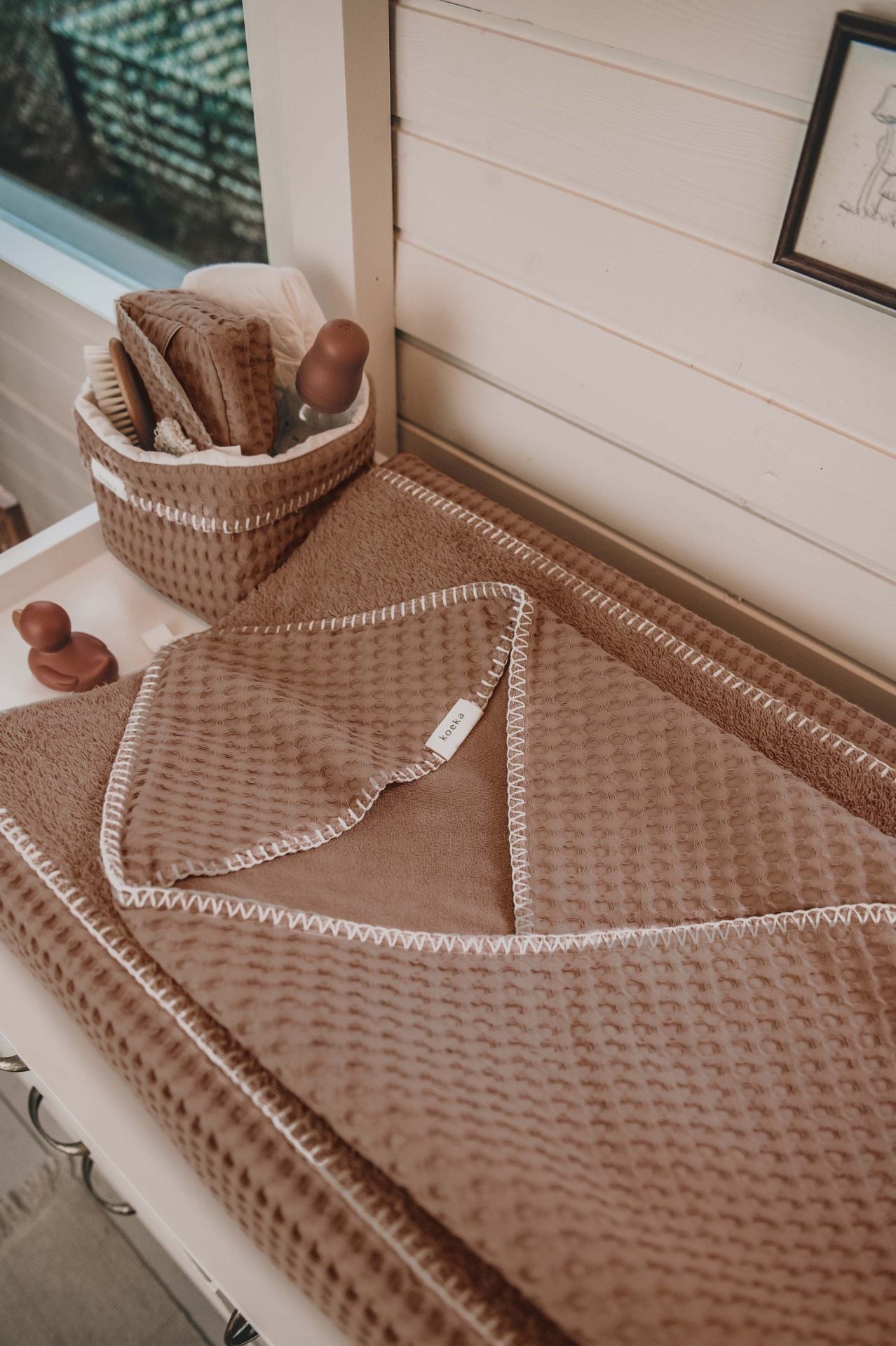 Gracias a su práctica abertura, puede utilizarse fácilmente con el arnés del auto o de la mecedora, sin perder comodidad ni abrigo. El detalle del asa para colgar la mantiene siempre a la mano en el baño o en el cuarto del bebé, y su diseño versátil la convierte en una aliada perfecta también para salidas o visitas médicas. Confeccionada en tela tipo waffle 100% algodón, de inspiración retro y textura ligera, combina estilo atemporal con funcionalidad moderna, disponible en una amplia gama de colores pensados para adaptarse a cada familia y a cada momento.