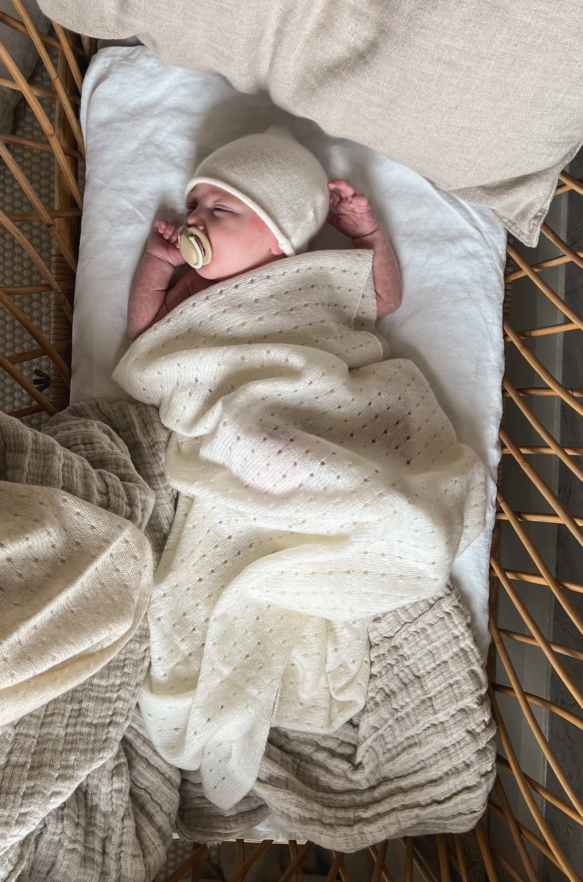 Diseñada en un tamaño compacto y con un patrón de huequitos que combina elegancia y funcionalidad, esta cobija ultra delgada brinda una calidez suave y envolvente sin sobrecargar. Ideal para días cálidos o fríos, es la solución perfecta para mantener a su bebé protegido, cómodo y con un toque de lujo en cada momento. Una pieza esencial que combina flexibilidad, estilo y bienestar en perfecta armonía.