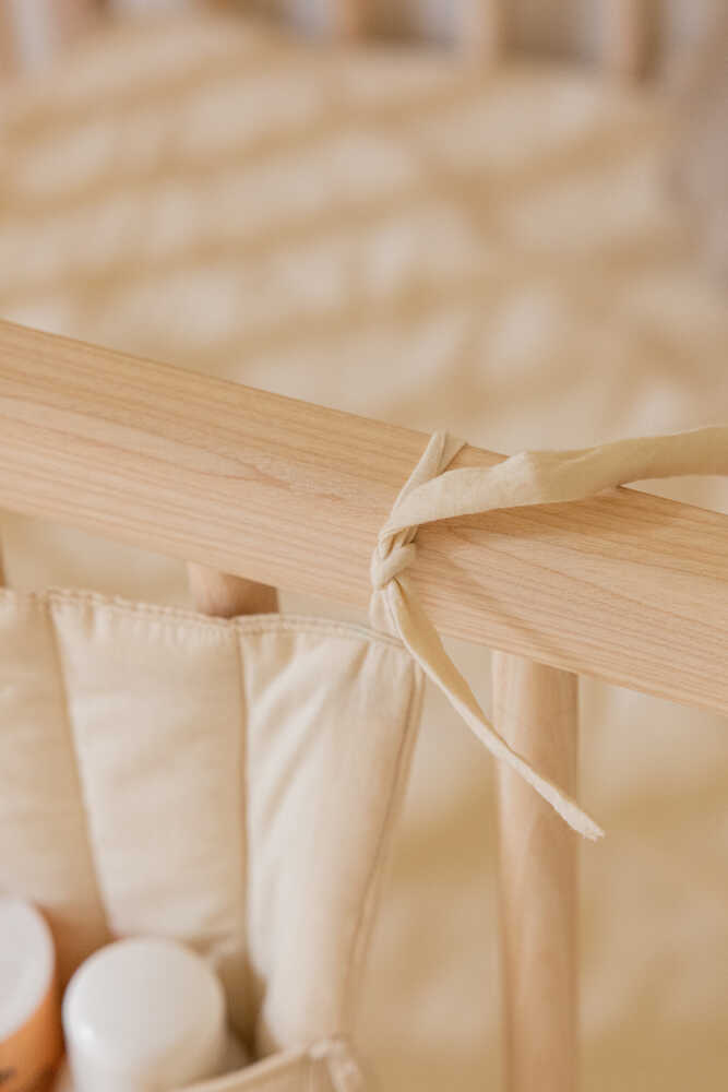 Transforma el espacio del bebé en un entorno ordenado, seguro y hermoso con el colgador Crib Pocket Paula. Diseñado para abordar la necesidad de mantener los artículos esenciales a mano y en orden, este práctico accesorio combina funcionalidad y estilo en un solo elemento. Con su confección en suave algodón orgánico, acolchado de manera que imita las cañas de bambú, ofrece un toque natural y relajante que armoniza con cualquier habitación infantil.
