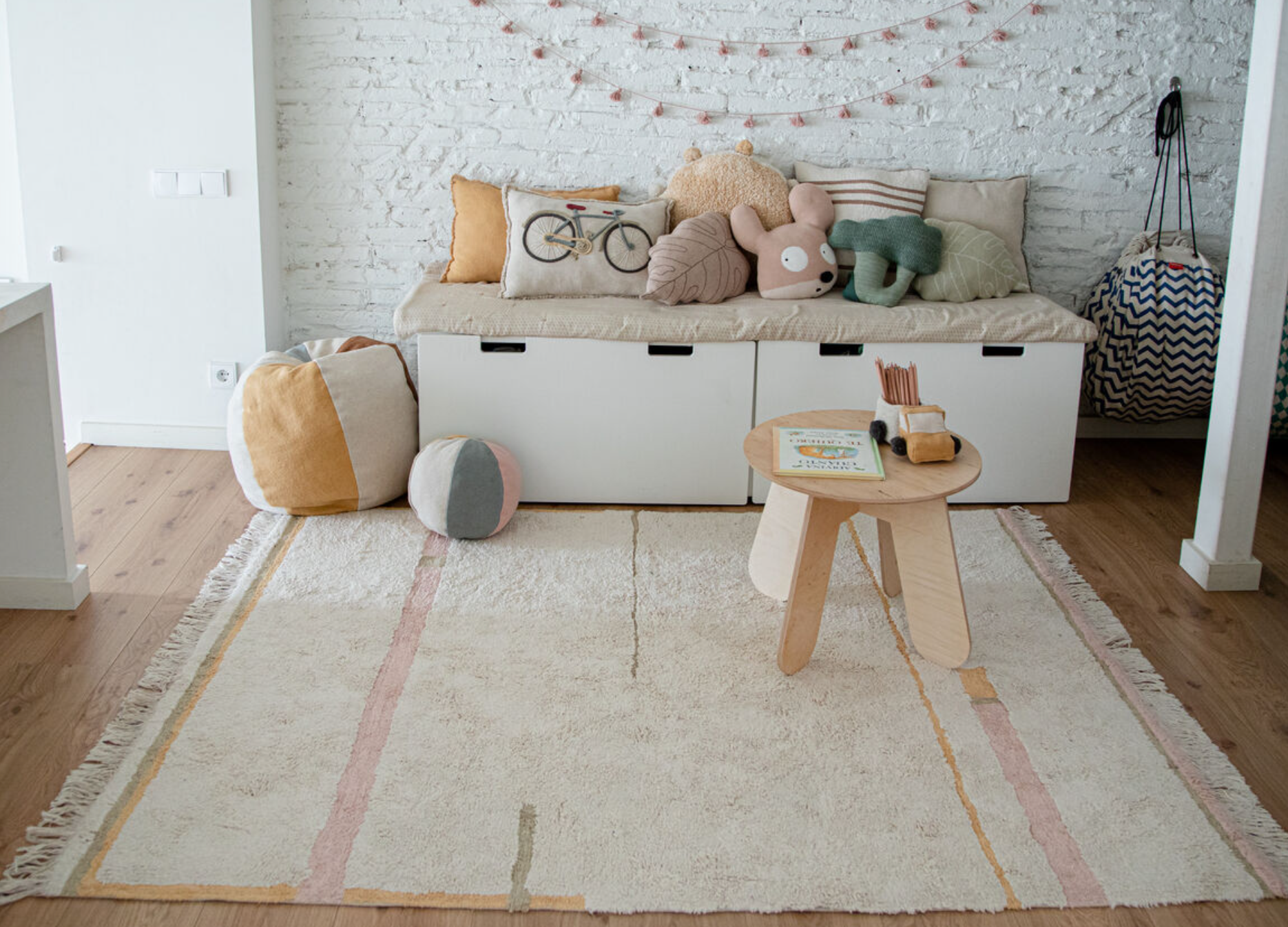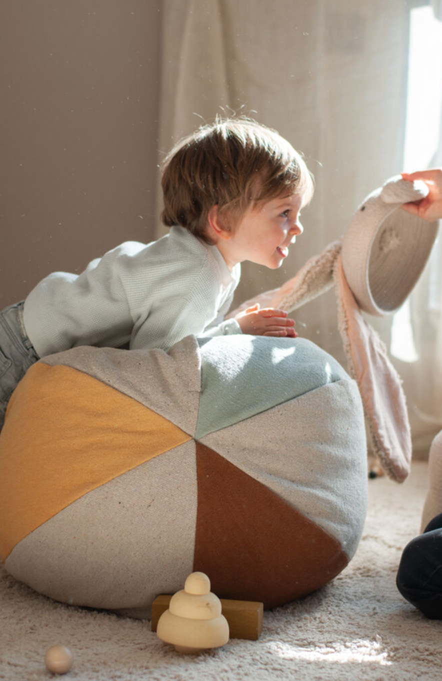 ¿No se puede jugar a la pelota en el interior? ¡Quizás puedas hacer una excepción con este! Nuestro cojín con forma de bola puede servir para jugar en el interior, o para decorar la habitación de los niños o la guardería. Los peques quedarán encantados con su textura tierna y sus colores contrastantes, brindándoles un elemento de diversión durante las sesiones boca abajo y un elemento decorativo para la cuna.