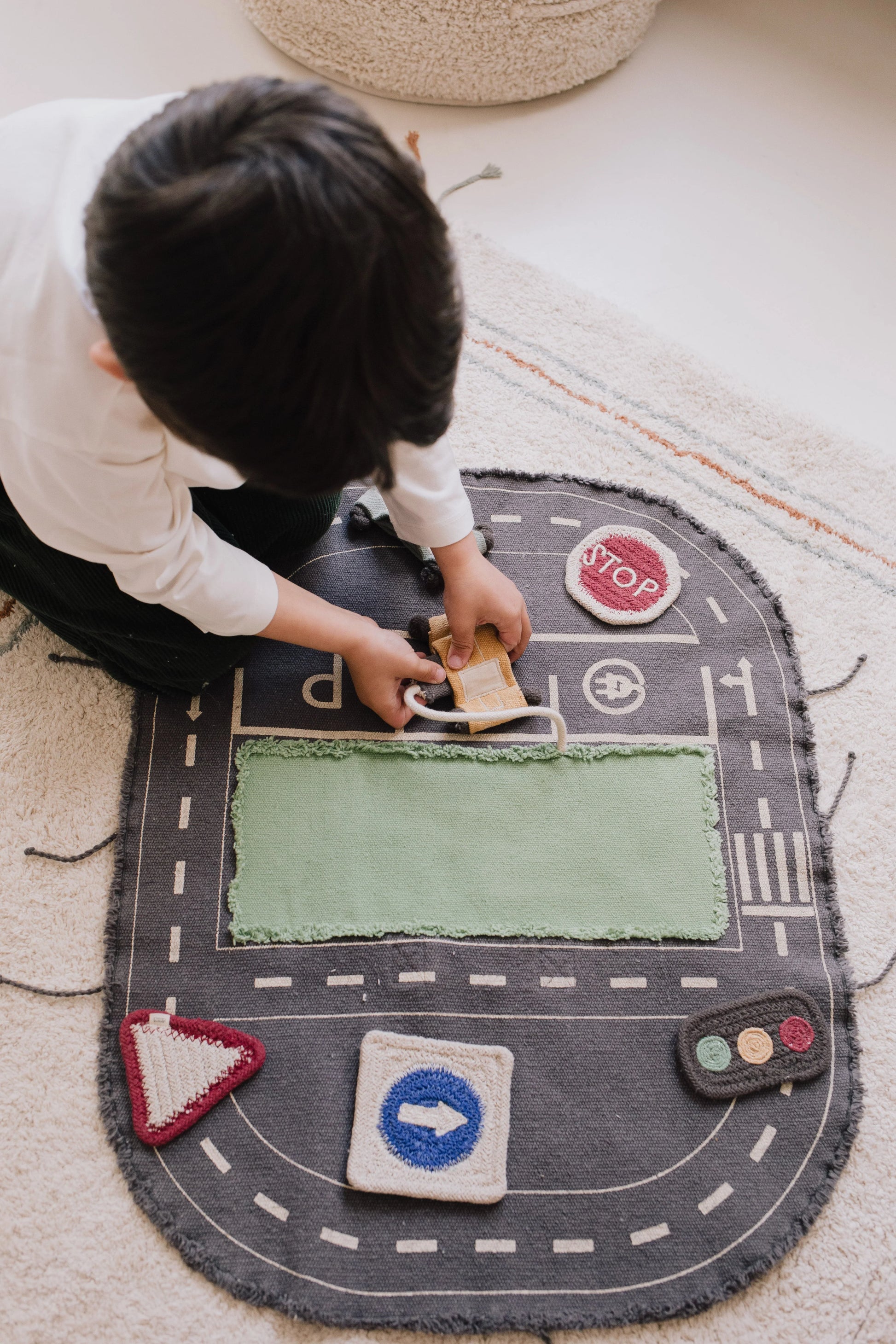 Todos los autos son eléctricos y cada aventura enseña algo nuevo. Su base plegable se convierte en un maletín fácil de llevar, con accesorios hechos a mano que estimulan la creatividad, la motricidad y la resolución de problemas.