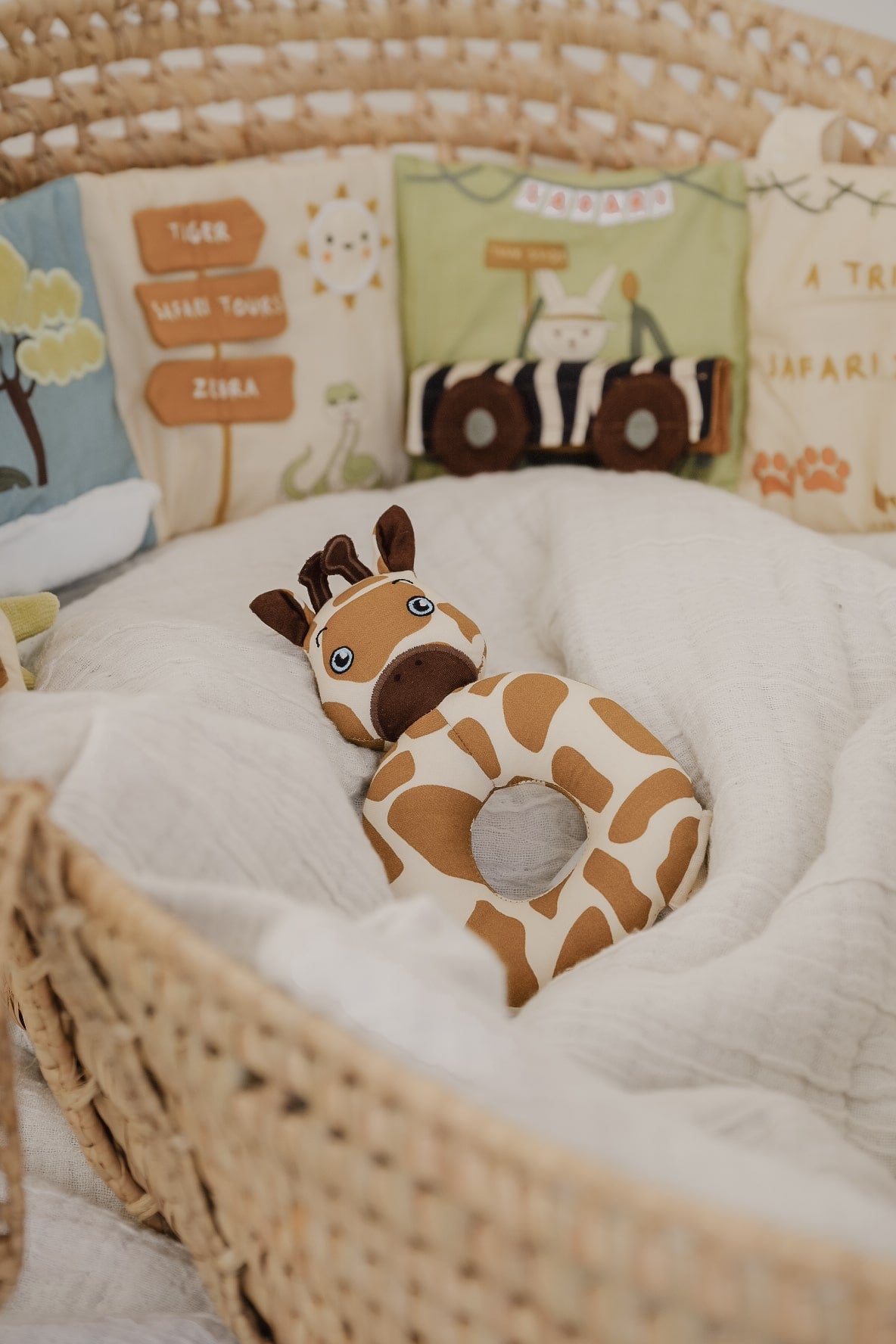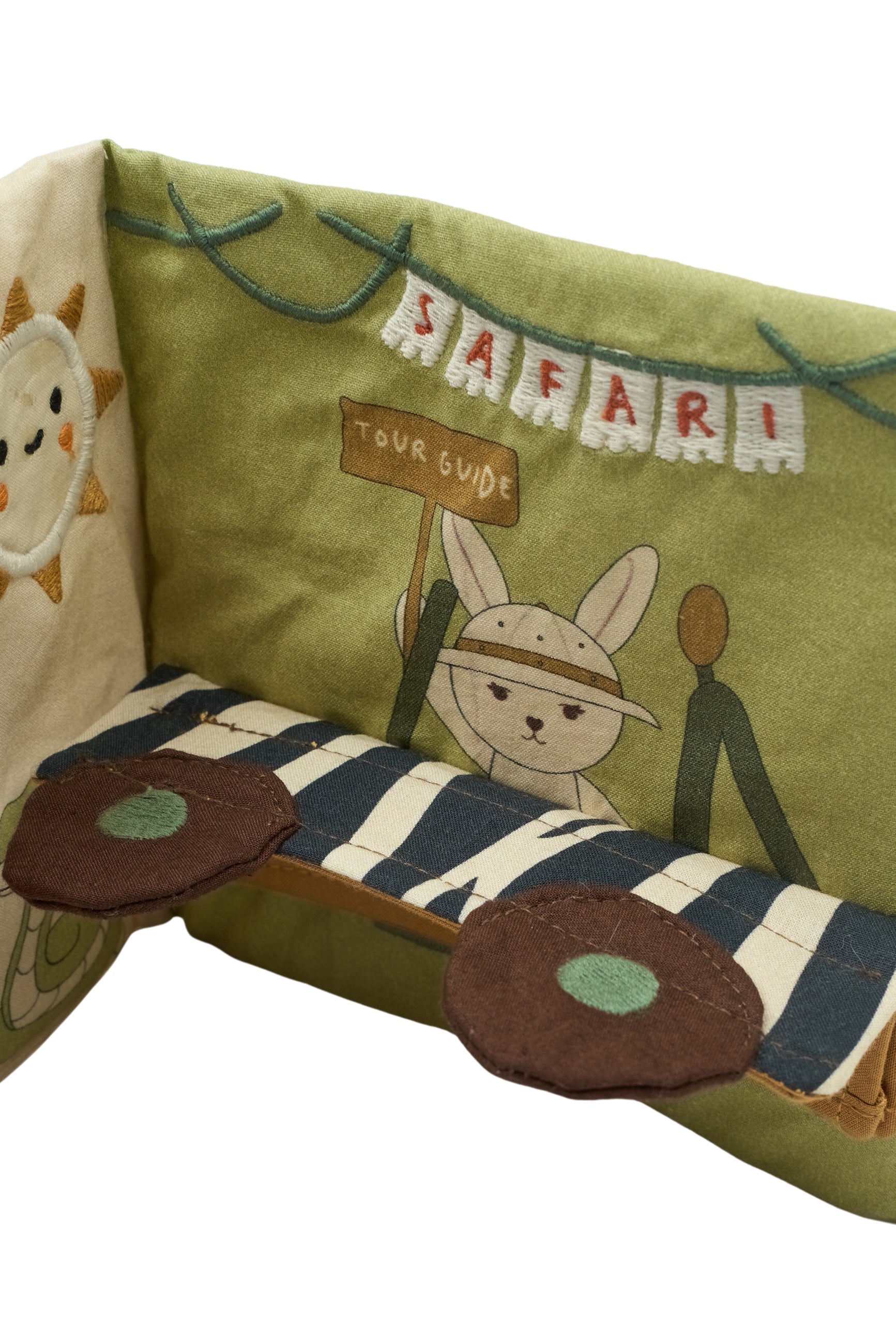 El Libro de Tela Safari, lleva a Oso y Conejo a lo más profundo de la sabana salvaje. Acompáñalos mientras descubren jirafas gigantes, cocodrilos traviesos y tigres rugientes escondidos entre la hierba alta.