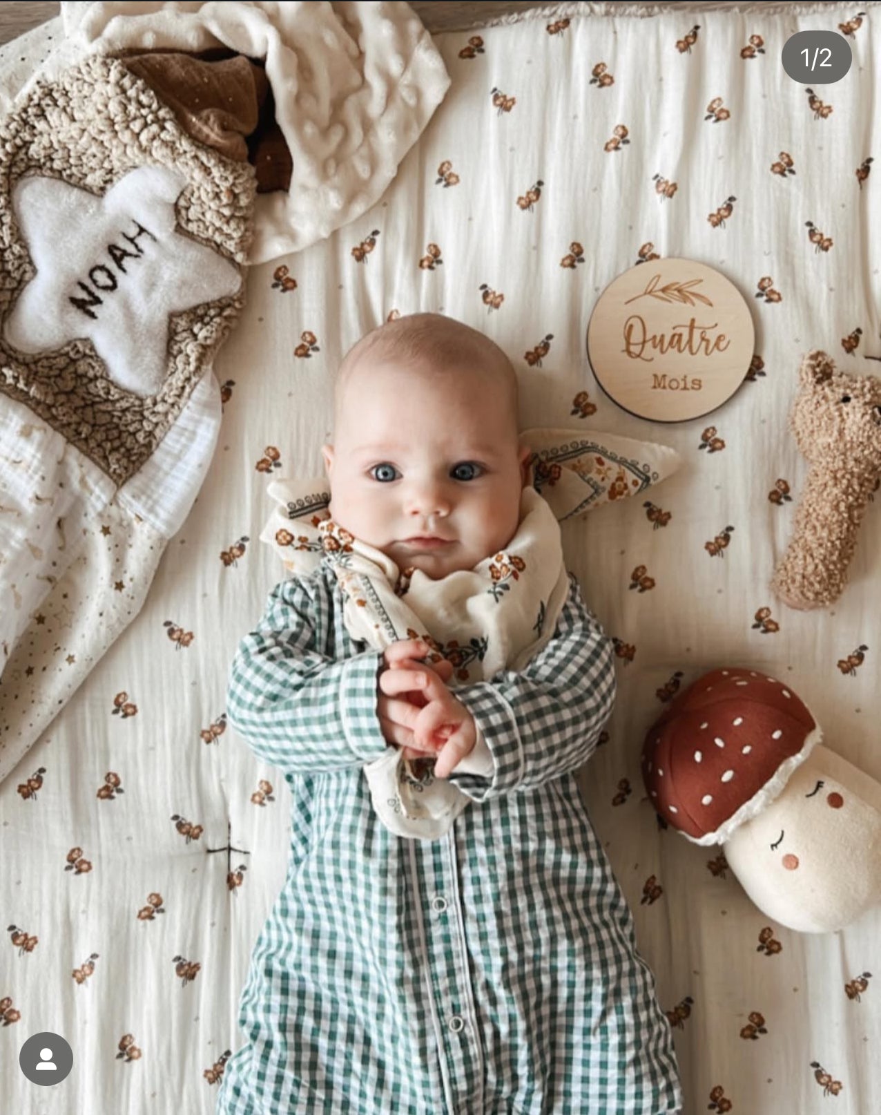 Calidad: Algodón orgánico al 100%, Relleno: Poliéster reciclado al 100%, Campanilla que emite sonidos