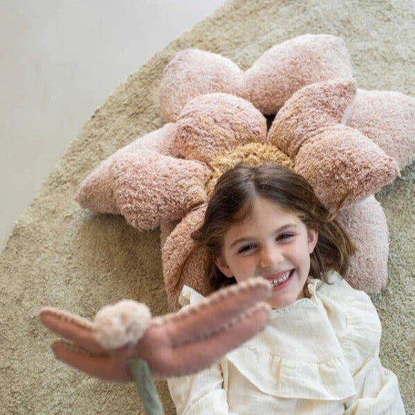 Una alfombra y un cojín: ¡2 en 1! Y una nueva incorporación a nuestra popular colección Puffy. Esta alfombra con forma de nenúfar recién salida del estanque se completa con un cojín desmontable con forma de flor. Ideal para una decoración infantil de fantasía o una sala de juegos para niños. Los más pequeños se divertirán imaginando la mágica vida salvaje que rodea un estanque mientras leen, descansan o juegan en esta alfombra.