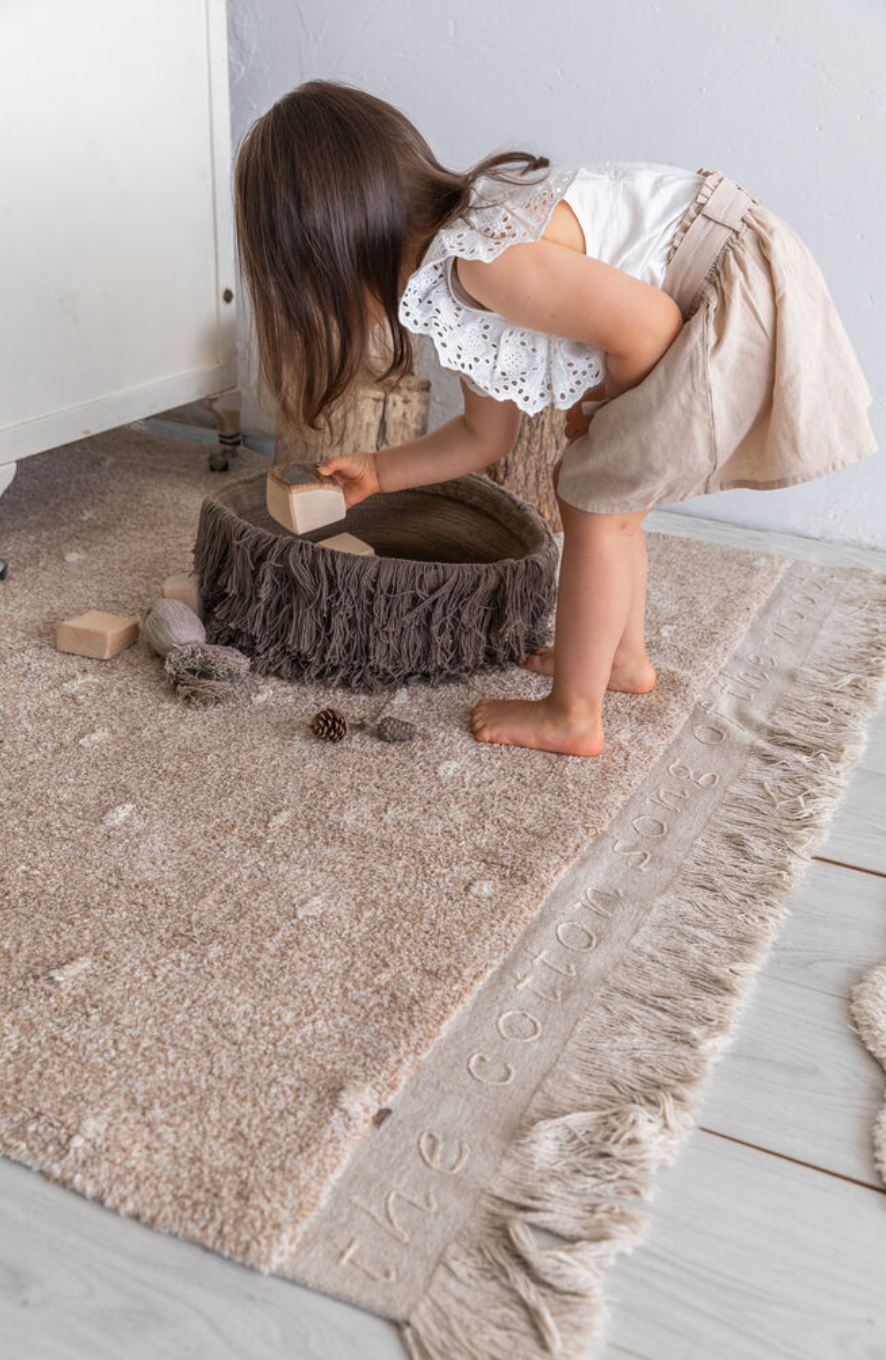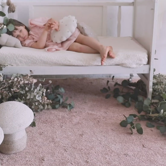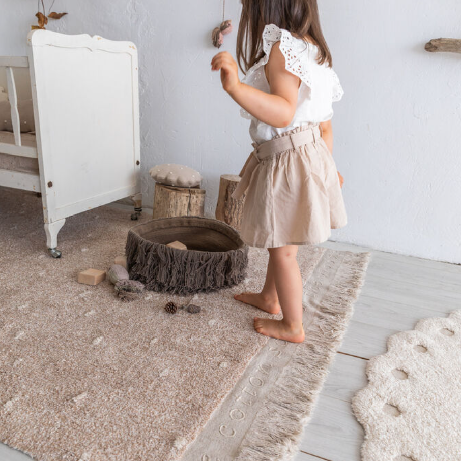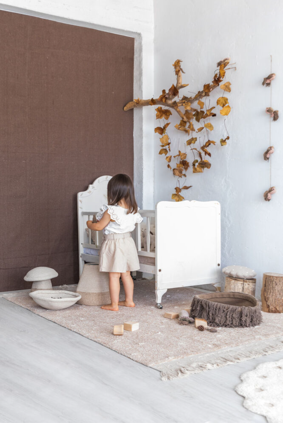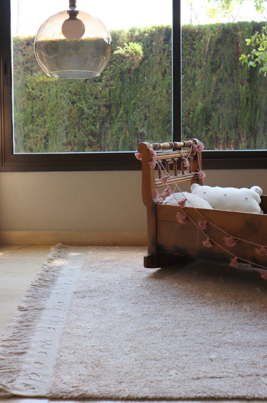 La Sinfonía del Bosque inspira el diseño de la colección Cotton Woods, que presenta tallos largos dispersos que asemejan espigas de hierba. Cada detalle hecho a mano convierte a esta alfombra lavable en una pieza única, enmarcada con citas bordadas y flecos deshilachados. Es momento de acurrucarte en la comodidad del cuarto de tu peque o tu sala y disfrutar de 'La Canción de Algodón de los Bosques'.