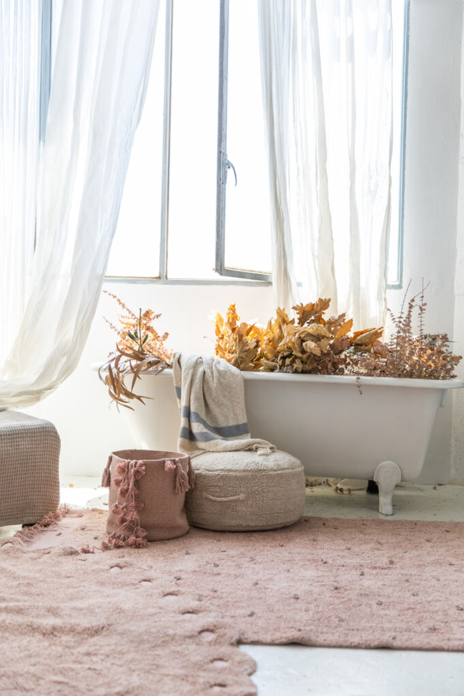 Recuerda que las alfombras de algodón pueden soltar fibras, especialmente al principio o durante su uso. Después de desempaquetarla, colócala en posición plana durante 2-3 días, y luego cepíllala o aspírala suavemente para devolverle su volumen.